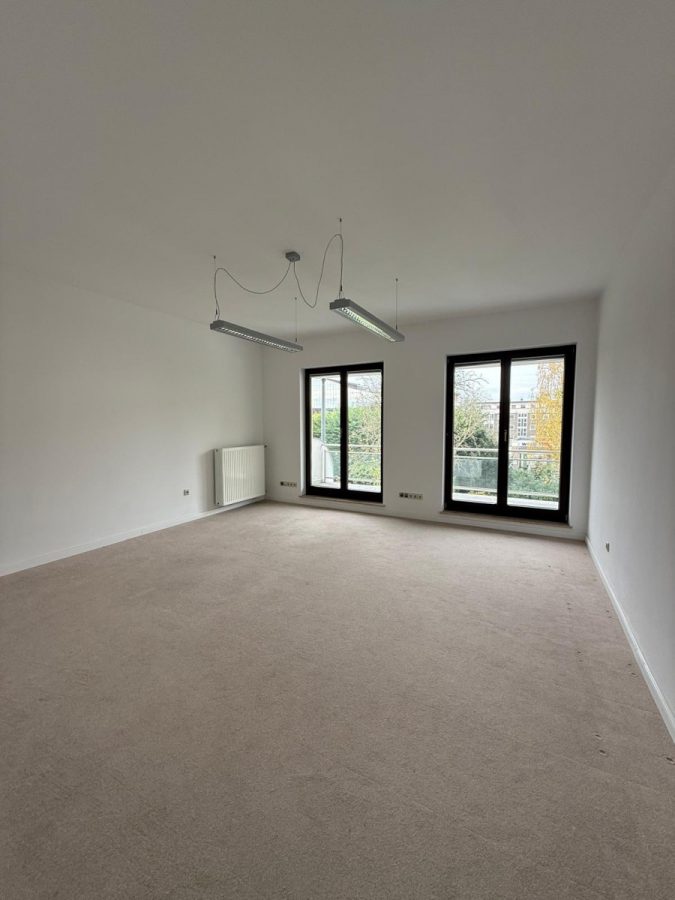 Die gesamte Fläche von ca. 183 m² mit vielen repräsentativen Details verteilt sich auf unterschiedliche Büroräume, Gemeinschaftsraum und WC. Ein großer Balkon komplettiert die Etage.