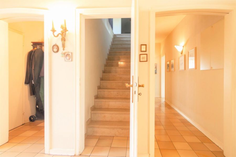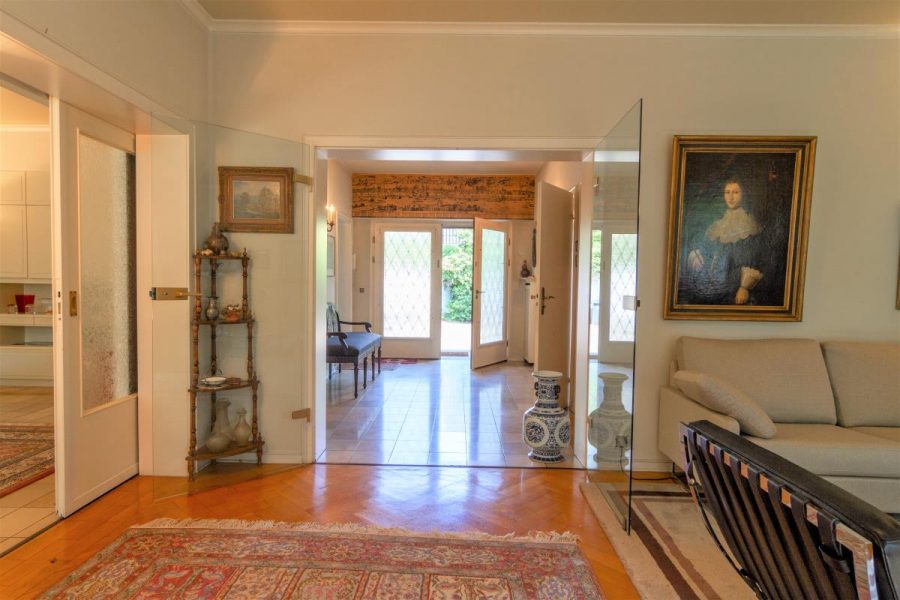 Das Haus befindet sich auf einem ca. 2.000 m² großen Parkgrundstück in Westausrichtung. Dazu gehört eine Doppelgarage sowie eine Einzelgarage, die Sie über eine großzügige Auffahrt von der Straße erreichen. Das Haus wurde 1957 erbaut. Die Außenwände wurden nachträglich durch eine Klinkersteinfassade wärmegedämmt.