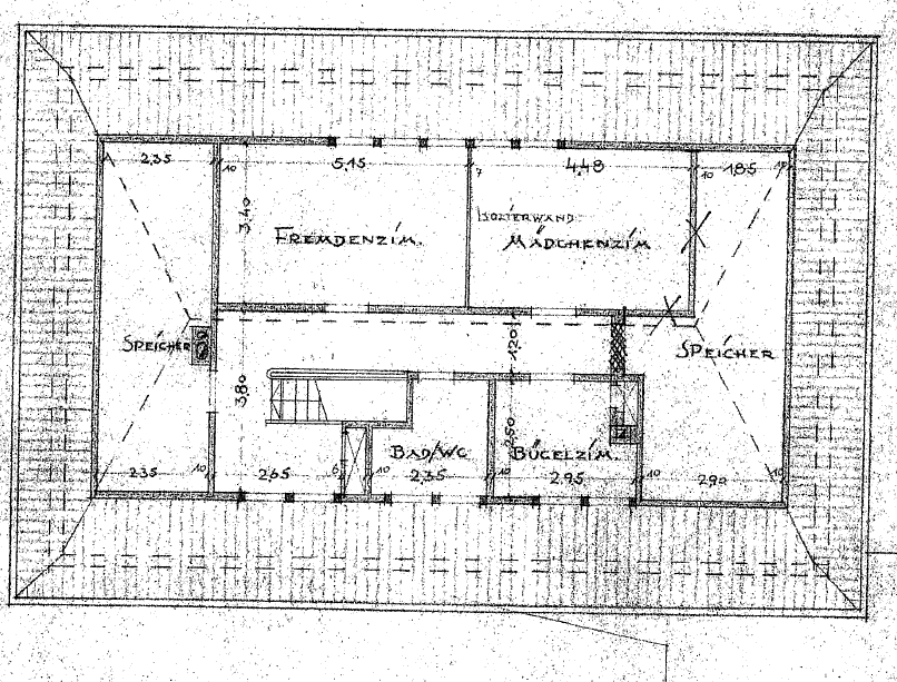 Das Dachgeschoss umfasst 2 Schlafzimmer, ein Bügelzimmer und ein Wannenbad.