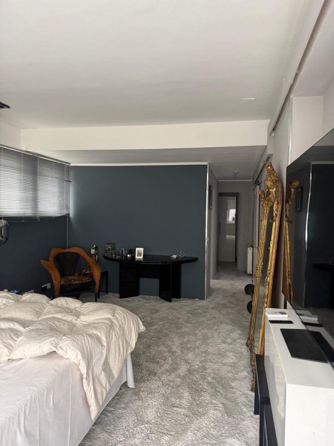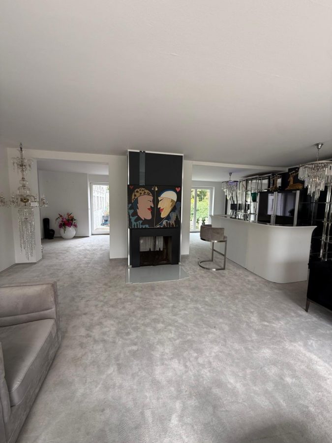 Das vormals repräsentative Einfamilienhaus aus dem Jahr 1958 befindet sich auf einem ca. 1237 m² großen Grundstück, eingefriedet mit einer weißen Mauer, und verfügt über eine Wohnfläche von ca. 275 m². Es handelt sich um ein freistehendes Einfamilienhaus mit Teilunterkellerung und Satteldach mit teilausgebautem Dachgeschoss. Über die Jahre wurde das Gebäude vielfach umgebaut.