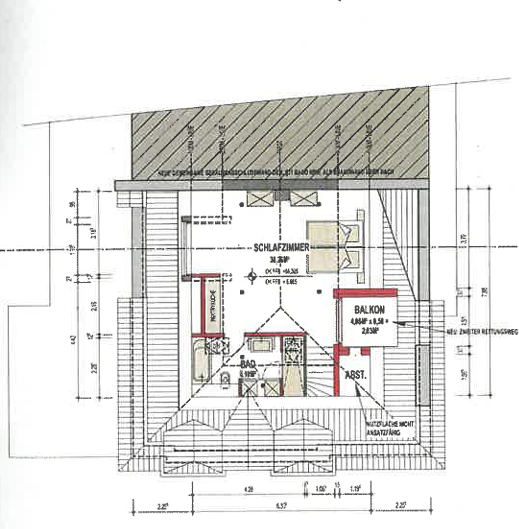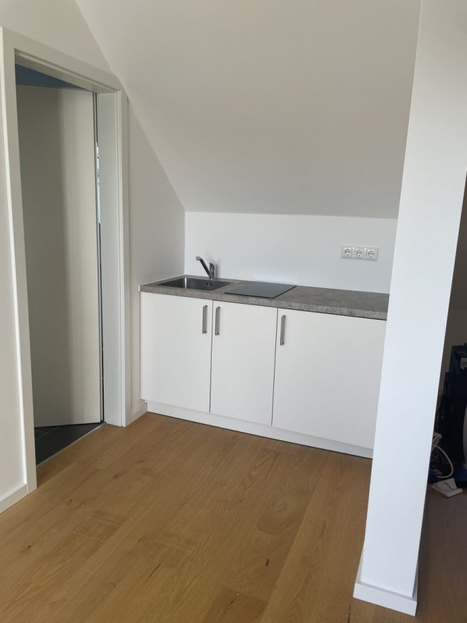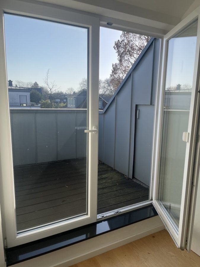 In einer Wohnstraße befindet sich das moderne Appartement von ca. 38 qm im Dachgeschoss einer Altbauvilla.